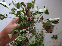 癥狀:病菌從子葉或幼根侵入植株,在根頸部產(chǎn)生黃褐色水漬狀病斑,后變黑褐色,引起根基組織腐爛。當潮濕環(huán)境時,病部產(chǎn)生分生孢子器(即黑色小突起),病部表皮易剝落,纖維組織外露。當環(huán)境干燥時,病部表皮凹陷,緊貼莖上,成株期感病后,約10~30天全株枯死,發(fā)病部位多在莖基部貼地面,有時也出現(xiàn)主莖和側枝分期枯死現(xiàn)象。