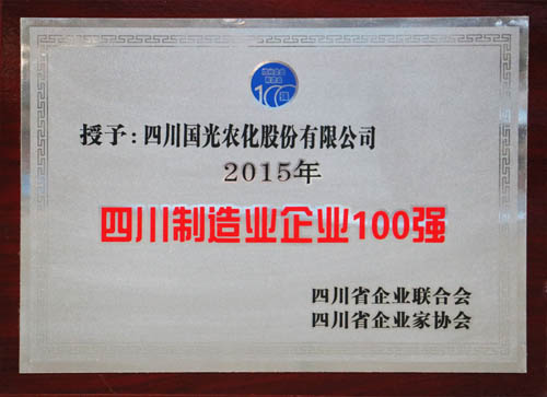 2015年11月26日下午,四川省企業(yè)聯(lián)合會、四川省企業(yè)家協(xié)會發(fā)布了《2015四川企業(yè)發(fā)展報告》,我公司再次榮獲四川制造業(yè)百強企業(yè)。四川國光農資有限公司榮獲四川服務業(yè)百強企業(yè)。