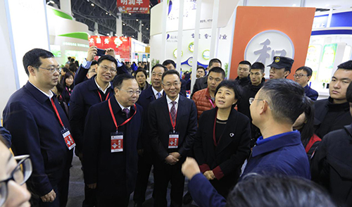 開(kāi)幕式結(jié)束后,領(lǐng)導(dǎo)們共同步入展館蒞臨參觀,在走到國(guó)光展位時(shí),領(lǐng)導(dǎo)們與國(guó)光副董事長(zhǎng)、總經(jīng)理顏亞奇進(jìn)行了親切交流,肯定了國(guó)光在植物生長(zhǎng)調(diào)節(jié)劑推廣上所開(kāi)展的工作,并聆聽(tīng)了國(guó)光的企業(yè)文化介紹。