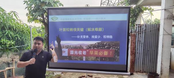 6月14日,國光農(nóng)化在四川省金堂縣召開“國光柑橘全程調(diào)控方案現(xiàn)場觀摩暨夏季修剪培訓(xùn)會”,104名核心種植戶參會,現(xiàn)場認購國光方案400畝。
