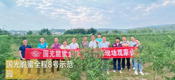 6月14日,國光農(nóng)化在廣西柳州召開“國光脆蜜金桔全程調(diào)控方案8號園-階段性驗收觀摩會”,10余名種植大戶參會,高度認可紛紛認購使用我司方案。國光在當?shù)匾呀?/span>200余個脆蜜金桔全程調(diào)控方案示范園!
