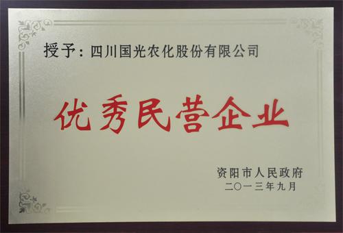 為表揚先進,樹立典型,做大做強民營企業(yè),推動民營經濟大發(fā)展、大提高,資陽市人民政府于2013年9月29日召開會議,對四川國光農化股份有限公司等20戶“優(yōu)秀民營企業(yè)”予以表彰。 同時,會議要求各級各部門解放思想、更新觀念,保證民營企業(yè)依法平等使用生產要素、公平參與市場競爭、同等受到法律保護,進一步激發(fā)民營經濟的創(chuàng)造活力和巨大潛力,把民營經濟打造為資陽市經濟增長的主體力量。