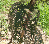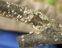 屬于同翅目,體外有蠟質(zhì)介殼。卵通常埋在蠟絲塊中、雌體下或雌蟲分泌的介殼下。 介殼蟲繁殖能力強,一年發(fā)生多代。卵孵化為若蟲,經(jīng)過短時間爬行,營固定生活,即形成介殼。介殼蟲抗藥能力強,一般藥劑難以進入體內(nèi),防治比較困難。