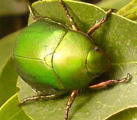 屬于鞘翅目(特點前翅堅硬,后翅膜質(zhì)),是咀嚼式口器,所以說被害植物有缺口、孔洞燈機械損傷,嚴重時可以吃光葉片,咬斷根莖。常在傍晚至晚上10時咬食最盛。常見的有銅綠金龜子、朝鮮黑金龜子、茶色金龜子、暗黑金龜子等。多在夜間活動,有趨光性。